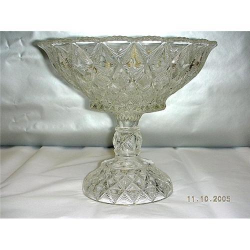 Not for the faint of heart, this is a true collectors piece. I am offering at auction not only for it's age or rarity but for it beauty alone. <p>It is absolutely exquisite. In remarkable condition, with no cracks, chips, repairs and only the slightest evidence of surface wear. There is 1 large straw mark in the base of the bowl which is inherent to glassmaking of that period. I have placed it next to one of my Waterford's (ask for additional pix) to show its brilliance and if one did not know it was pressed glass you would think it was cut crystal. <p>The company that made it was only in business from 1908 to 1912, and only made clear (flint) glass the first two years. Flint glass being the equivalent of Crystal of that period. The pattern name is DIAMONDS and was made by the Millersburg Glass Company, Millersburg, OH. It is a true open compote, and a very rare piece. There are plenty of Millersburg Carnival glass in different patterns and a even fewer in clear glass. But there is no reference in any records to a compote in "Diamonds" in crystal glass only to a water set, punch bowl and base. Making this a very rare and desirable piece indeed.<p>Please note: When photographing glass many of the reflections appear as surface marks. There is however surface scratches that become more predominant on close up photography under certain lighting. As with all Vintage pieces they are not new and light surface wear is to be expected. <p> I only ship to the continental USA, Verified ...