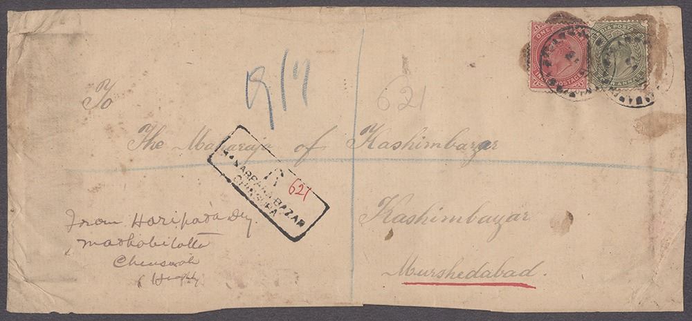 Edward VII, Registered Envelope, 1a, 4a,Addressed to The Maharaja of Kashimbazar, Murshedabad , 2nd Dely 19 NOV, Registered Post Seal SAARAFA BAZAR,Chuchura, GoodCondition, Rare.