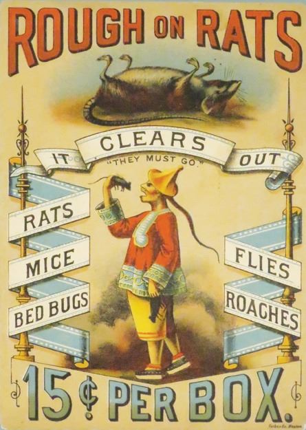 Estremely Rare Rough on Rats Paper Sign. Excellent color and graphics. We have not seen another. Near mint condition. Framed under glass. 5 X 7 inches image only.