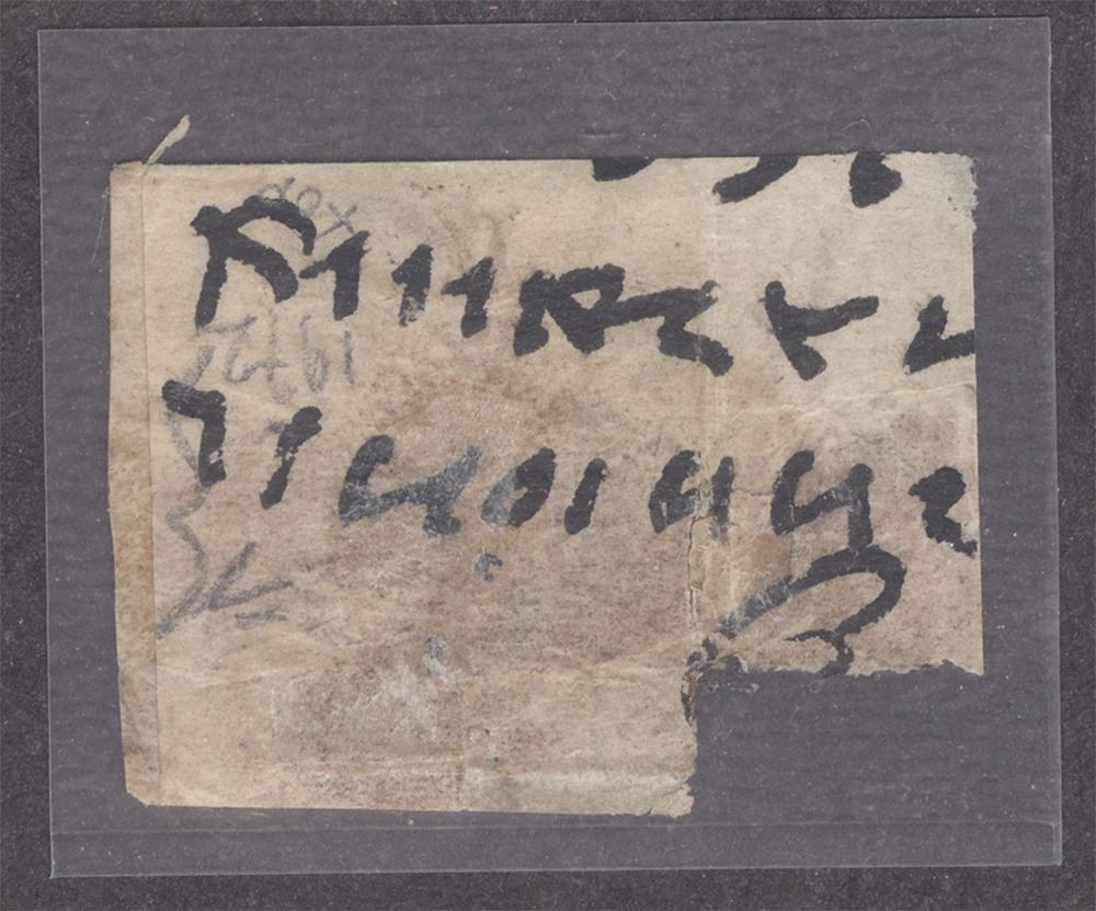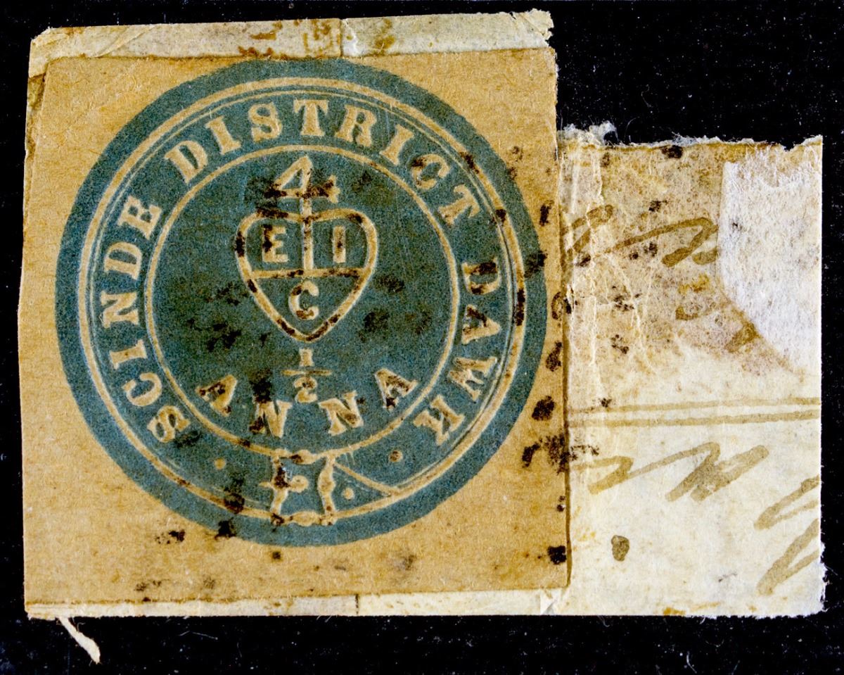 Scinde Dawk, 1852, 1/2 Anna, Blueon piece with tied Diamond of dots Cancellation,on piece is comparatively rarer than the fine used.CertifiedBy Bernard Behar Pascal Behr, Paris, Certificate No. 217414, dated 1st Nov 2011, USED, Margin Touched at the Top, Whereas Margin Alround on other Three Sides, Very Light Cancellation,SG #2, Extremely Rare.
