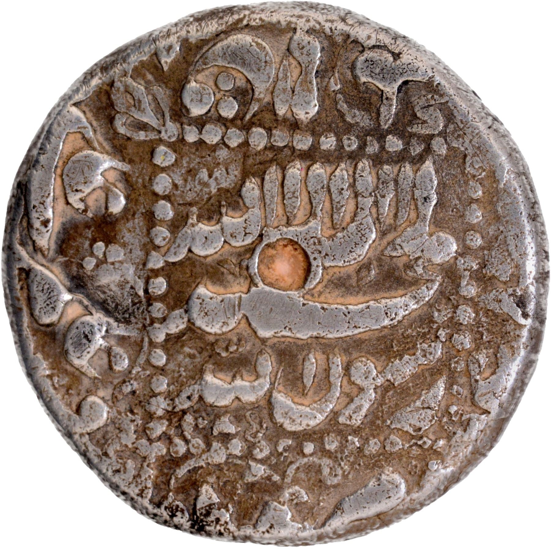 Shah Jahan (AH 1037-1068/1628-1658 AD) Golkonda Mint, Silver Rupee, AH 1045/9 RY, Obv: Arabic legend The Kalima Shahada within a dotted square and the four Caliphs names in the margin, Rev: Persian legend Shahjahan Badshah Ghazi within a dotted square, saheb-e-qiran Sani Shihab ud-din Muhammad zarb Golkonda at the margin, 11.27g, 21.98mm, (KM # 235.34),test marks, about very fine, Extremely Rare.