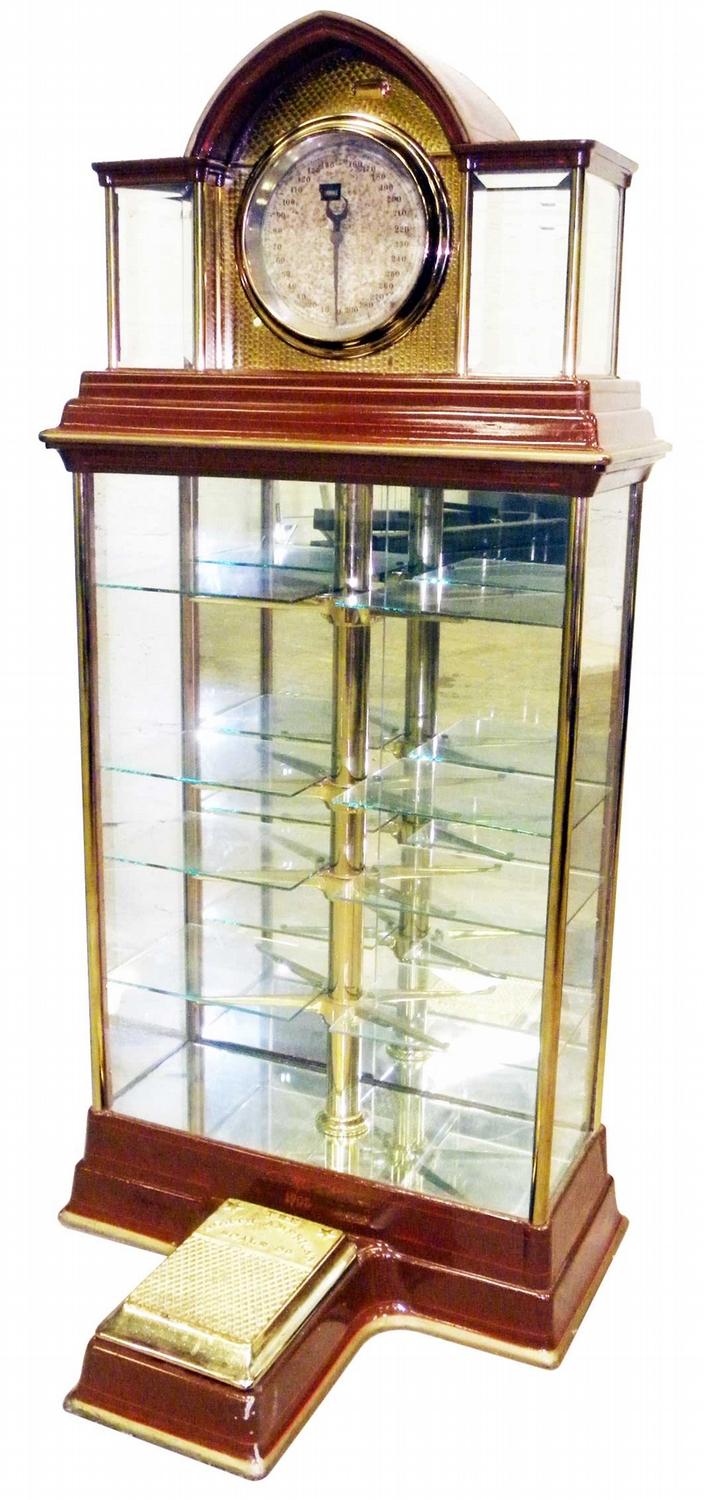 Showcase Scale Mfg. by the North American Scale Company, Boston, Mass. Original dial customer indicator latest patent date 1909. Older 70's restoration, excellent condition. 34 X 75 X 32 inches.
