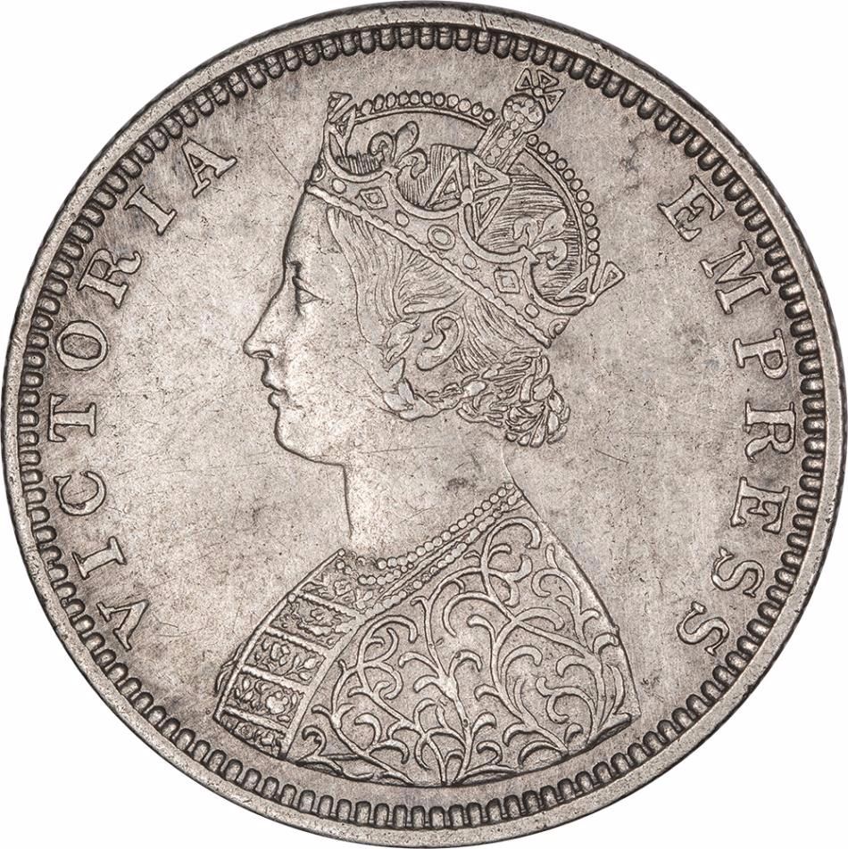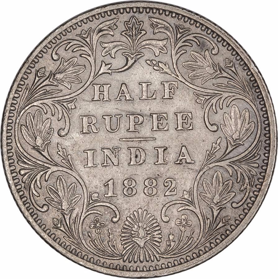 Extremely Rare Silver Half Rupee Coin of Victoria Empress of Bombay Mint of 1882.