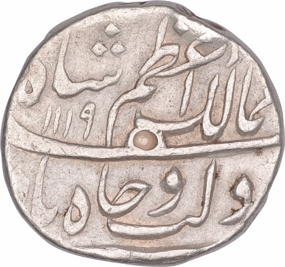Azam Shah (1707 AD),Burhanpur Mint, Silver Rupee, AH 1119/Ahad RY, "Ba daulat wa jah"Couplet,11.40g, 21.11mm, (KM # 332.3), about very fine, Extremely Rare.