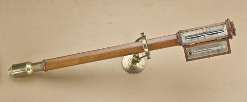Extremely fine quality barometer and thermometer with naval bracket and mount. Finely American or English made as graduations and conditions are in English. Very good showing original tubes containingmercury. Found in Mexico approx. a decade ago and by tradition, taken off the Mexican presidential yacht approx. 1910-1920. The brass mounts and quality are excellent, and possibly researchable. Est: $1,500 - $3,000