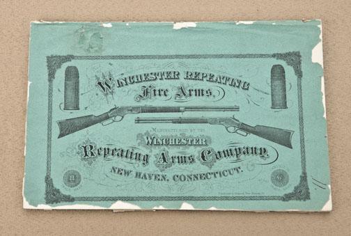 Extremely rare original 1869 Winchester Fire Arms catalog with green cover and 64 pages with fold outs; in overall very good condition with some slight tattering to cover; contains numerous testimonials as tothe superiority of the Winchester Model 1866. A must for the serious Winchester collector and one of the few originals known. Est.: $2,000-$3,000.