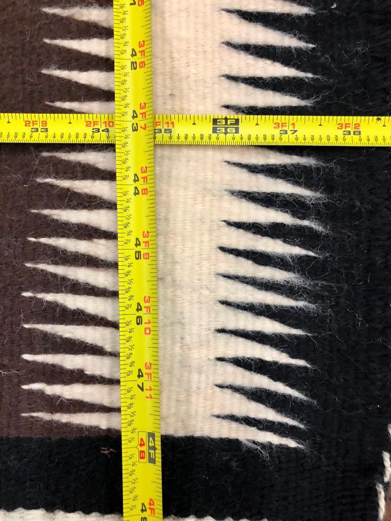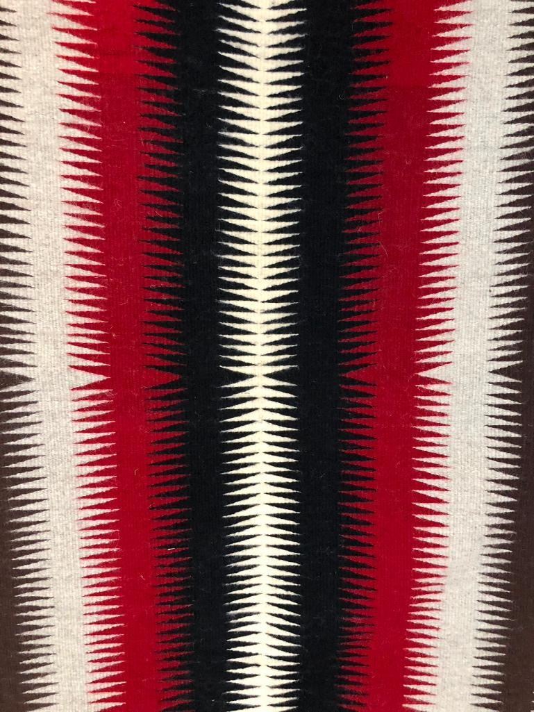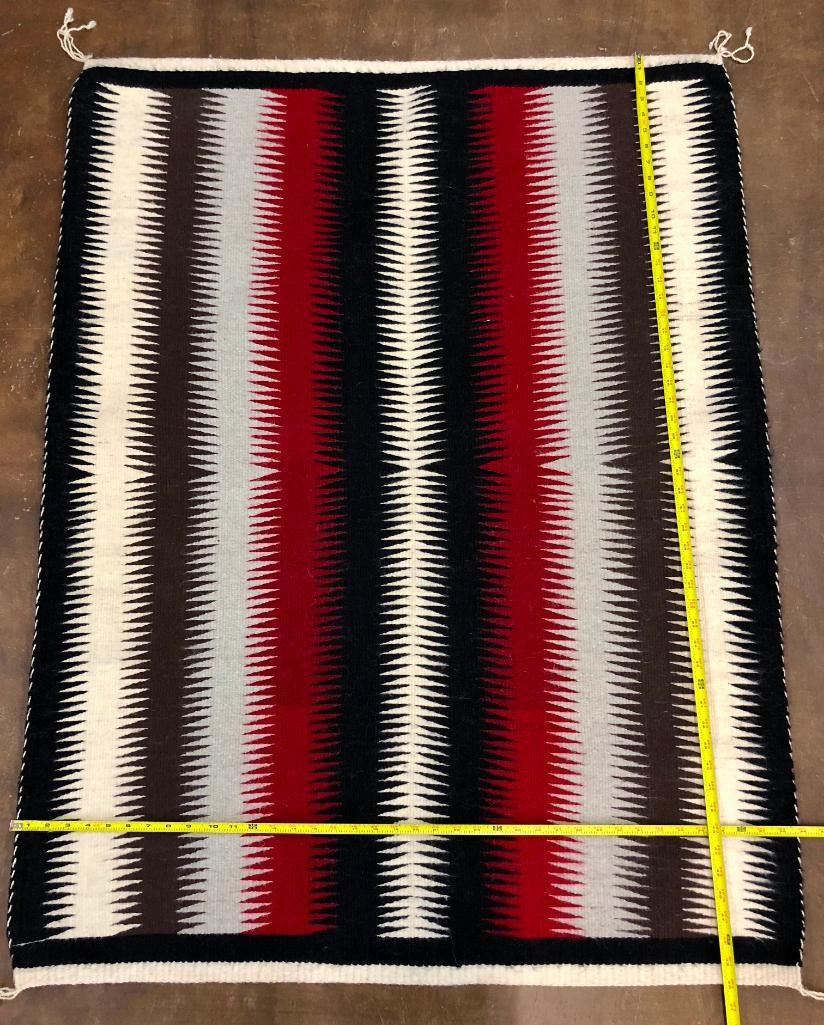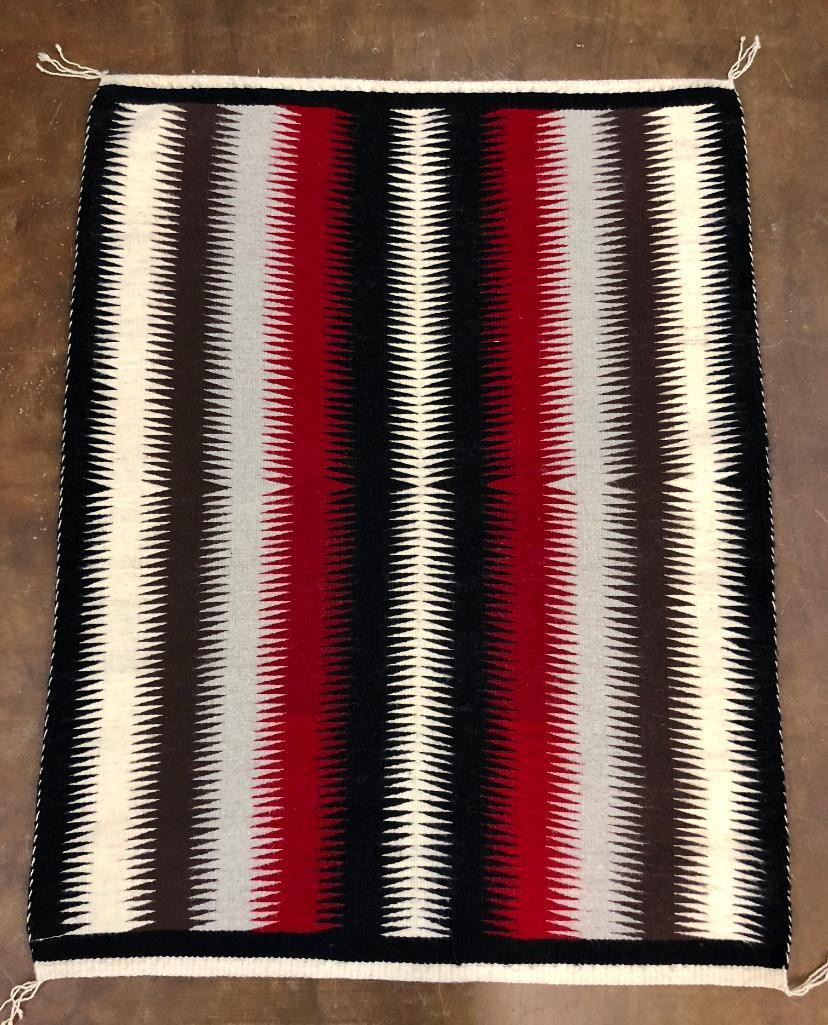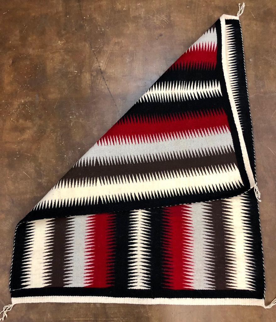 For your consideration we have this nice, eye dazzling Navajo textile woven in reds, blacks, grays and whites. Nice for decor and to add to your textile collection. Maker: Unknown Navajo weaver. Approx. Age: Fairly modern. Size: 39 inches wide X 50 inches long. Condition: Good for its age, minimal wear expected. Please look closely at the pictures - they are an important part of our description. Shipping: There will be a $5 handling / packaging fee for shipping this lot. The actual cost of postage will be added on top of that. BUY IT NOW: If you would like to buy this item now without waiting for the auction to end (this option is only available up to 48 hours before the auction starts to close), the “Buy it Now” price is the high estimate of this lot. If you would like to end the auction early and pay the high estimate (plus applicable fees), please contact us by phone or email and reference this lot number.