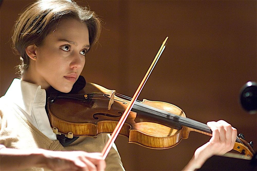 (Lions Gate 2008) This violin was acquired by the production for use by Jessica Alba as "Sydney Wells". The violin is made of wood and features a unique wood grain that matches on screen and measures 24" in length. The bow is broken at one end and measures 28.75" in length. Included with the violin and bow is a black vinyl carrying case.