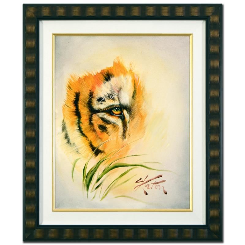 "Eye of the Tiger" is an original oil painting on canvas by Martin Katon, hand signed by the artist! This piece has been custom framed using acid free materials and is ready to hang. Includes Certificate of Authenticity! Measures approx. 23" x 27" (with frame); 15.5" x 19.5" (image).
