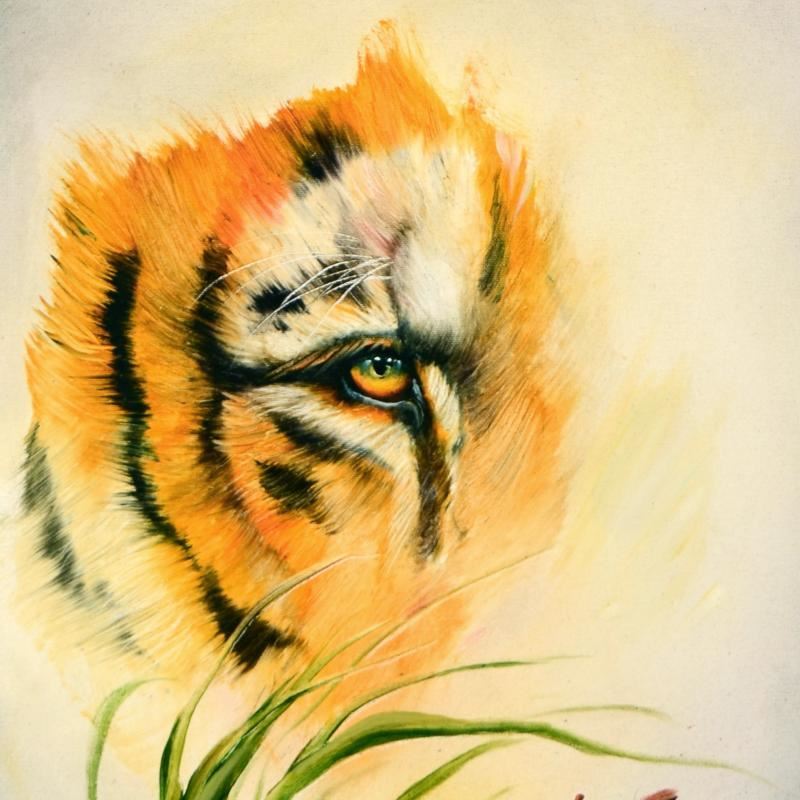 "Eye of the Tiger" is an original oil painting on canvas by Martin Katon, hand signed by the artist! This piece has been custom framed using acid free materials and is ready to hang. Includes Certificate of Authenticity! Measures approx. 23" x 27" (with frame); 15.5" x 19.5" (image).
