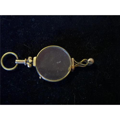 This is the only Longnette I have ever had.Do not see them very often.I purchased this many years ago from an estate but I need to clean out so these need to go also.Very good condition except there is a tiny piece broken out of the gold? where they hook together in the center.They are still very usable.Nice workmanship on the end where the chain would hook on.Glass in very good condition and measures 1 1/2"(the diameter of the glass.)