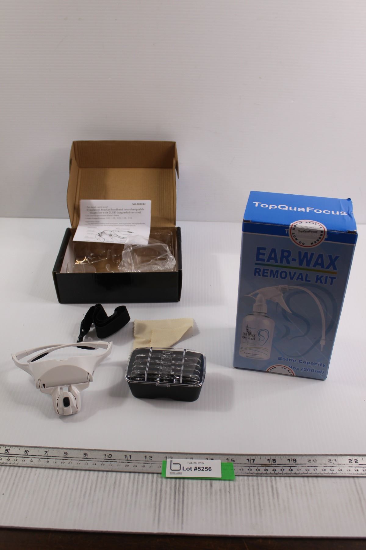 Eyeglasses Headband Interchangeable Magnifier with 2LED, Ear Wax Removal Kit - Sealed