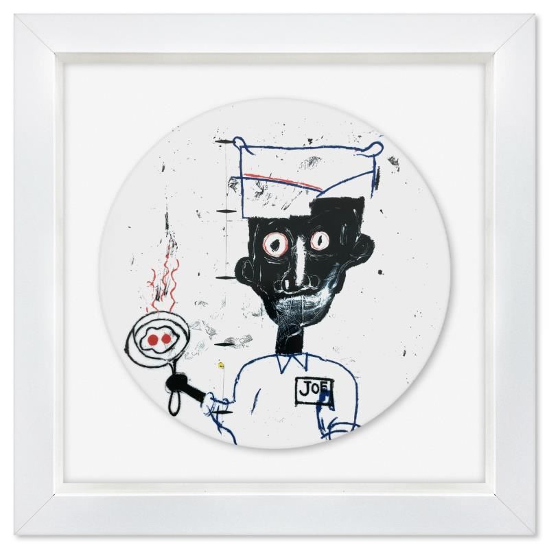 "Eyes and Eggs 1983" is a Limoges porcelain plate bearing the plate signature inverso of Jean-Michel Basquiat (1960-1988). This plate is custom framed and floated on linen. Measures approx. 16" x 16" (frame), 11" (plate diameter). This item requires special handling and may have a longer than usual turnaround.