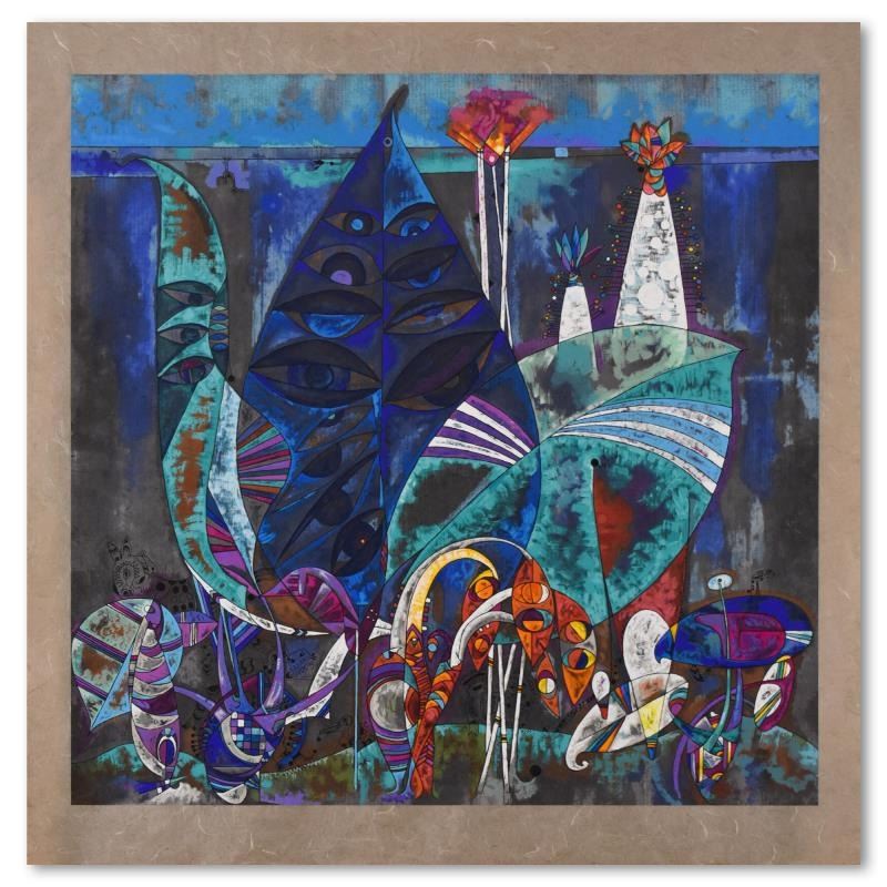 "Eyes of the Jungle" is a limited edition serigraph on rice paper by Lu Hong, numbered and hand signed by the artist. Includes Letter of Authenticity. Measures approx. 37" x 38" (with border), 33" x 32" (image).