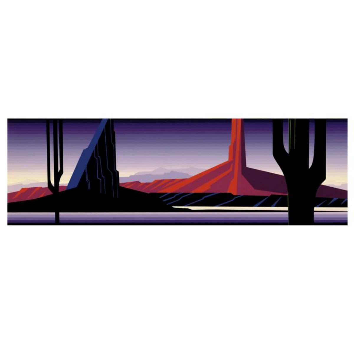 "Beneath The Silent Sky" is a limited edition serigraph on paper by Eyvind Earle (1916-2000). The piece is numbered, hand-signed by the artist, and accompanied by a certificate of authenticity. Measures approximately 7" x 22" (image). Reference #: 228246.