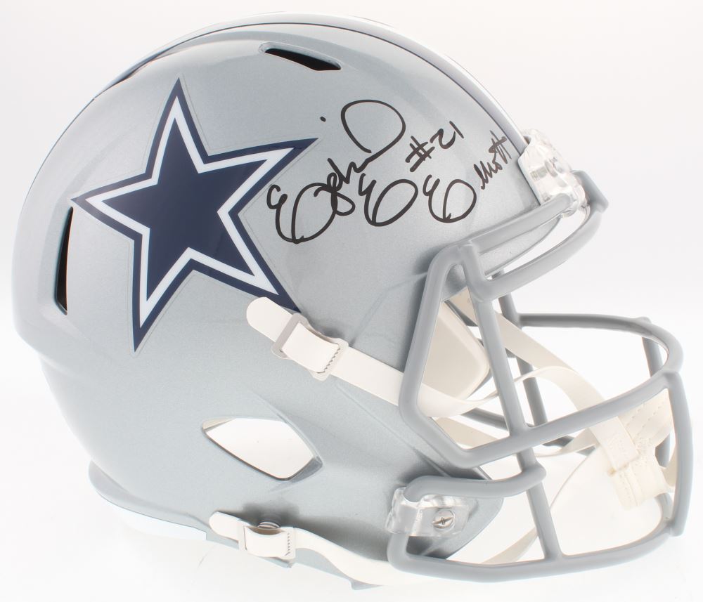 Riddell Cowboys full-size replica speed helmet. Hand-signed in black felt-tip pen by Ezekial Elliot.