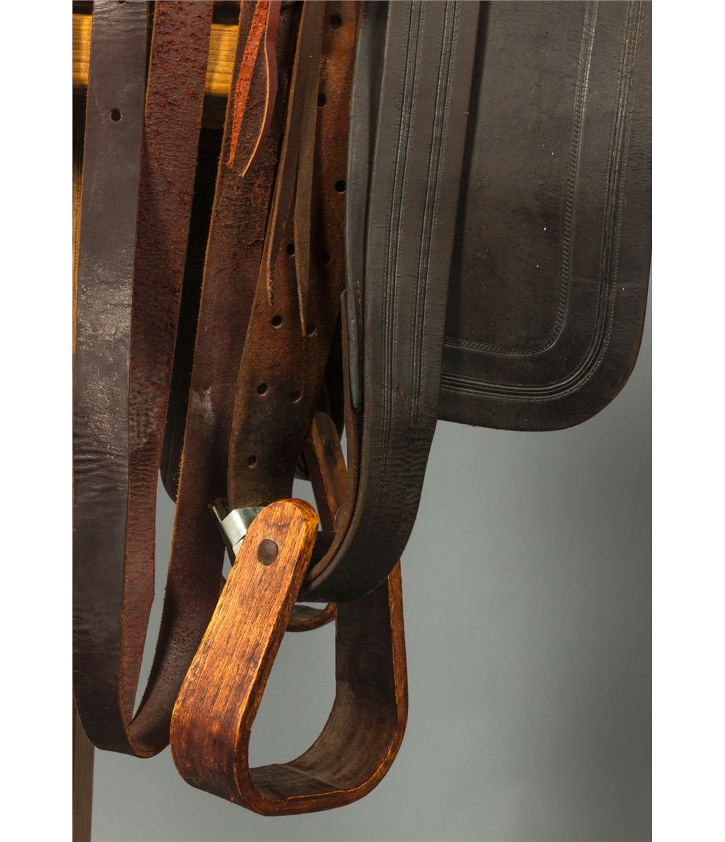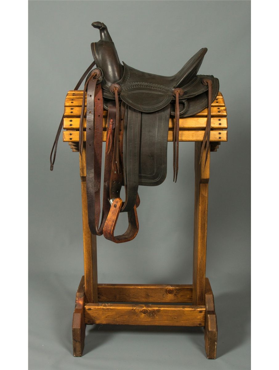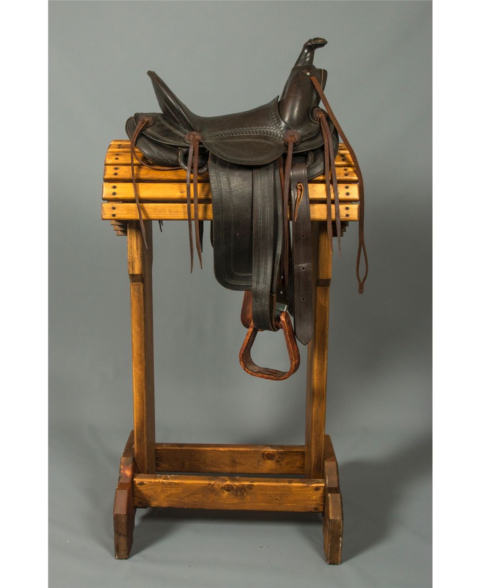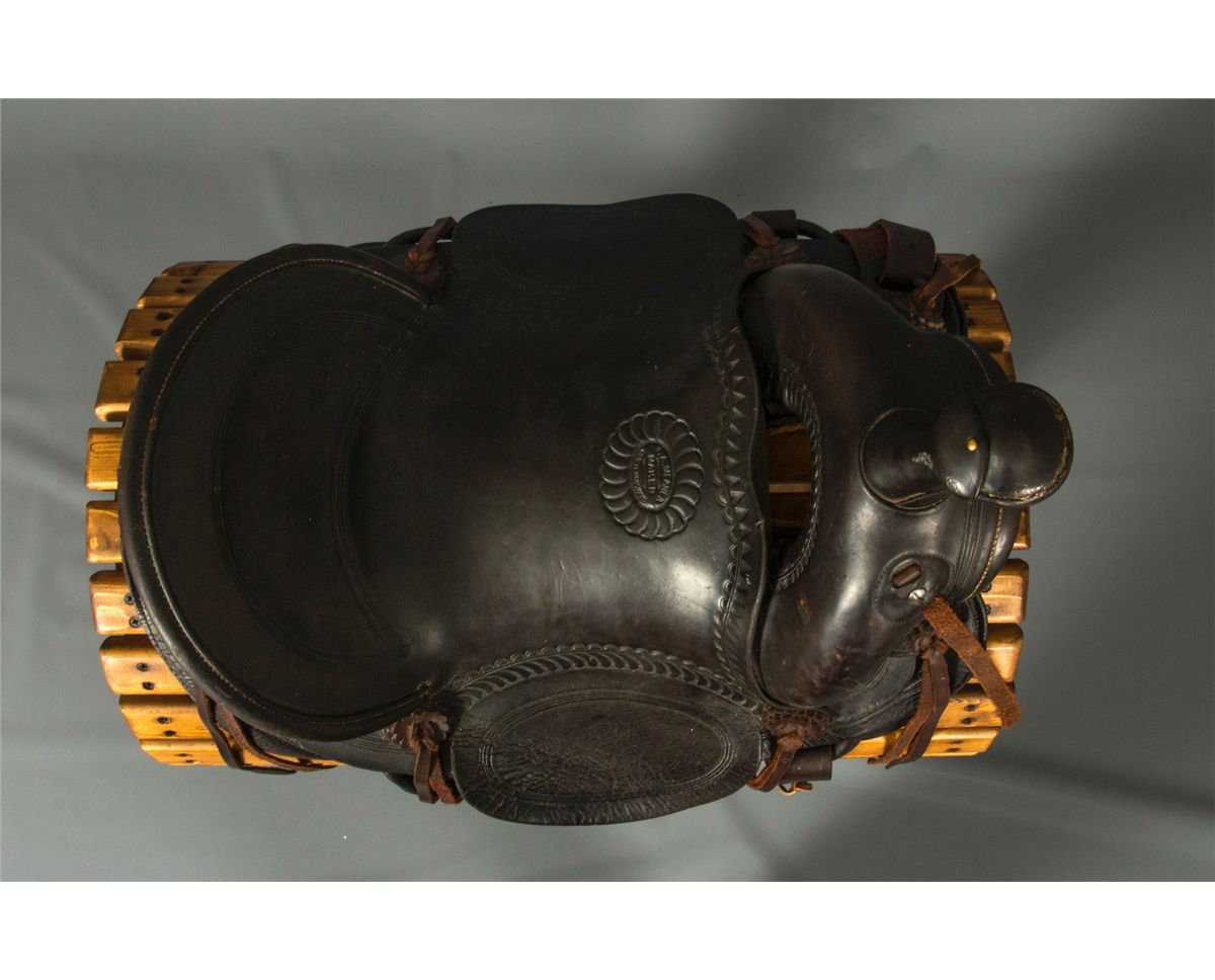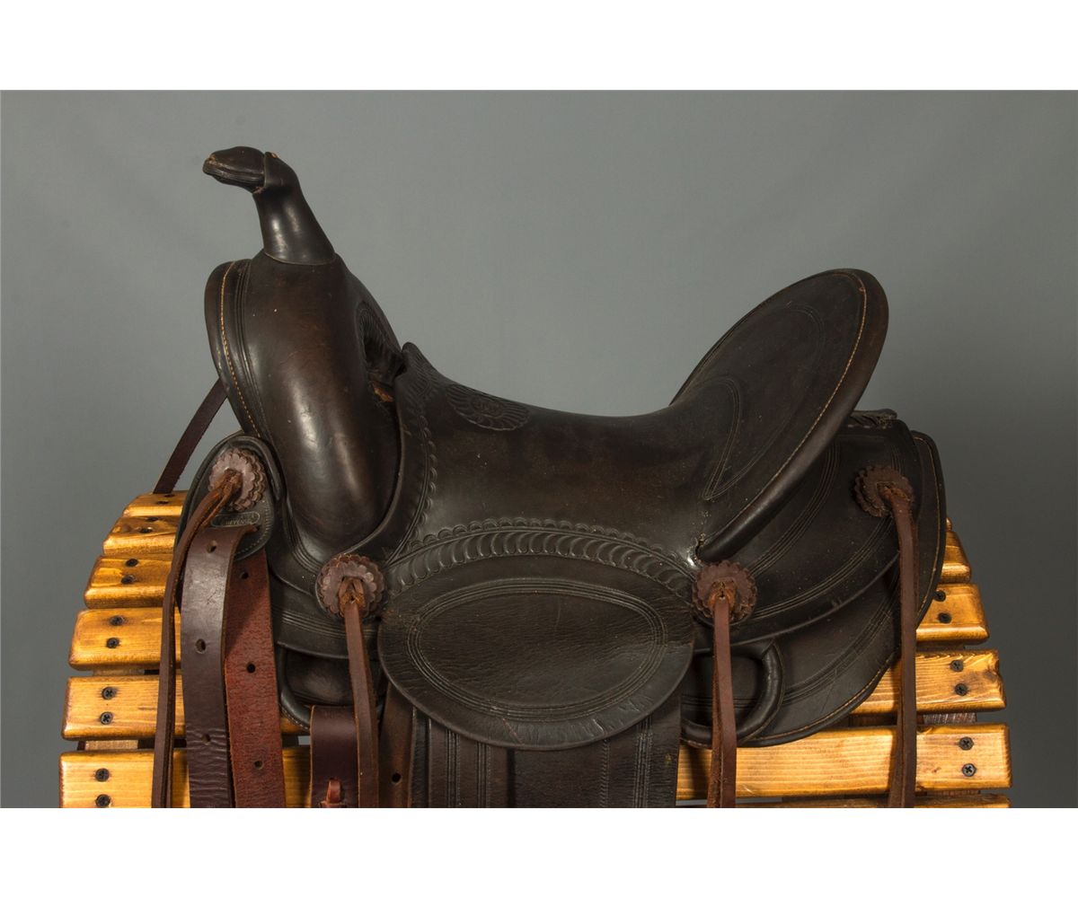 F. A. Meanea (Cheyenne, WY.) Youth Saddle. 14" seat. High back cantle. Tooled border. Maker marked on seat and on the left side of pommel. Circa 1910-1920. Provenance: Estate of Jim Nicholls.