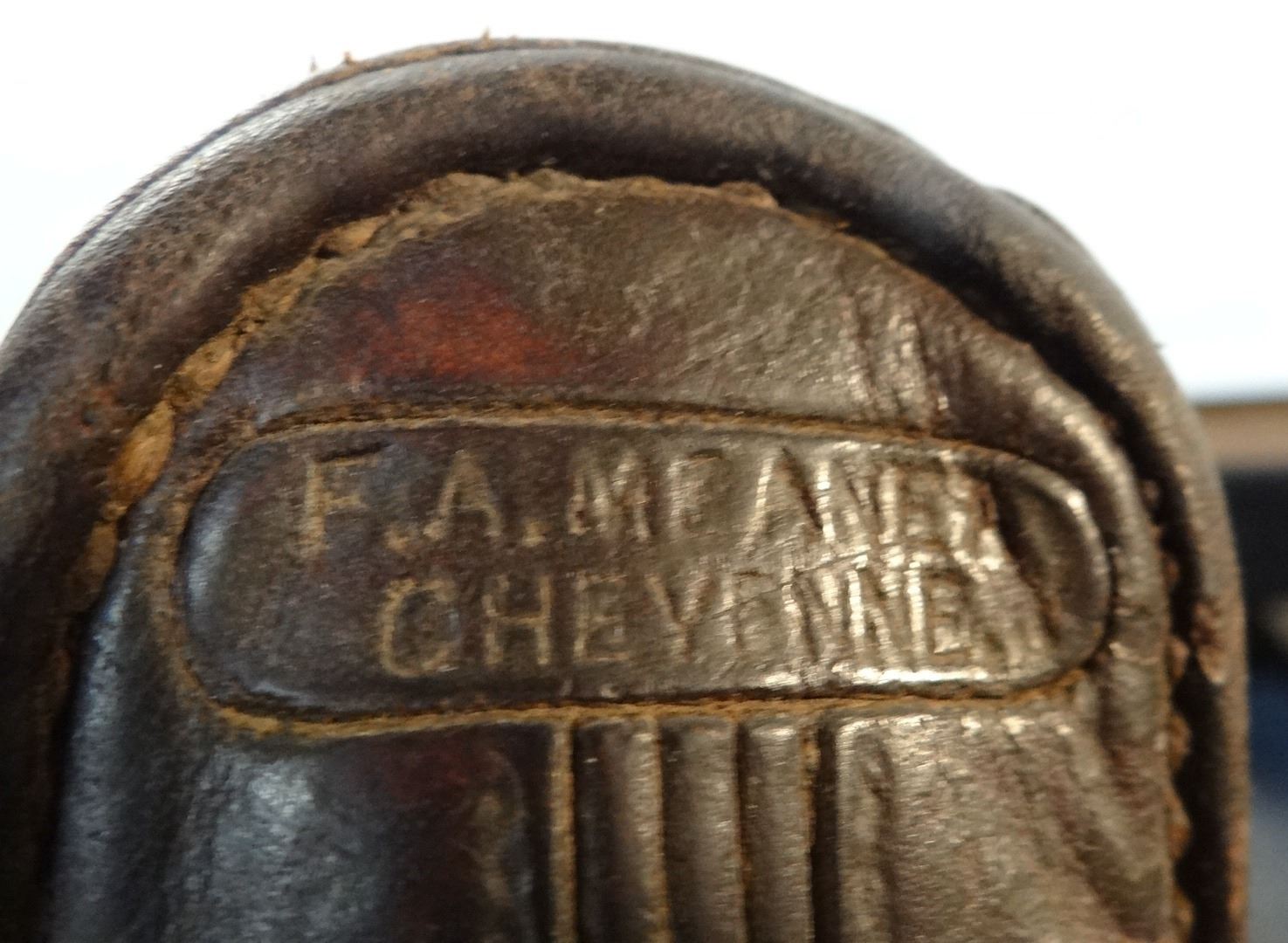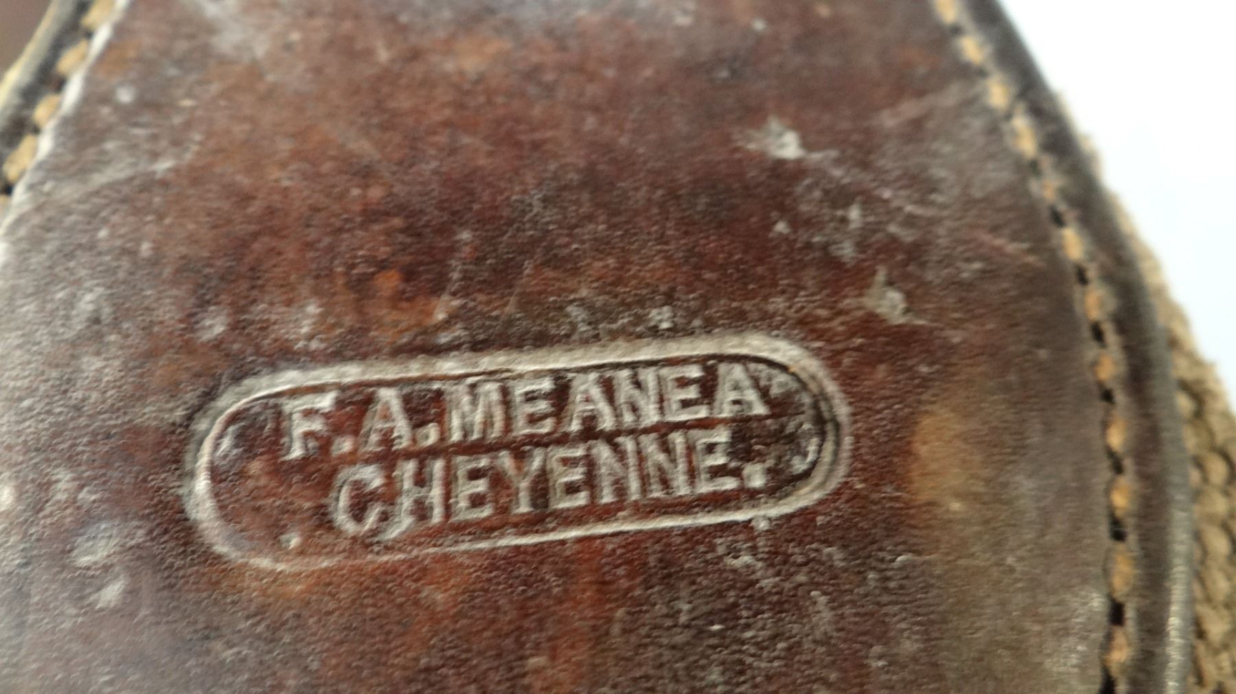 F. A. Meanea, Cheyenne, WY, leather covered stirrups, marked