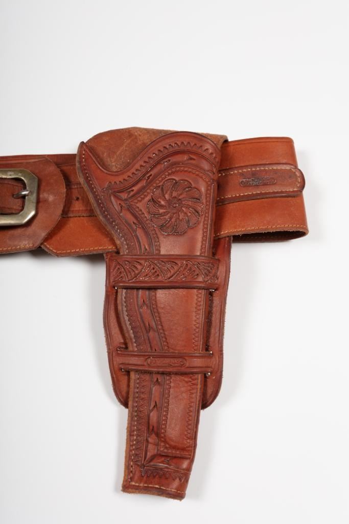 1) 45" long. Tooled floral designs, stamped F.A. Meanea Co. Cheyenne, WYO.