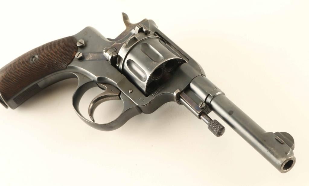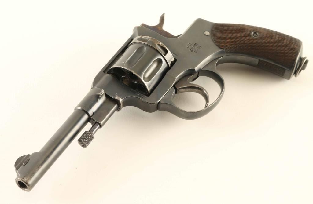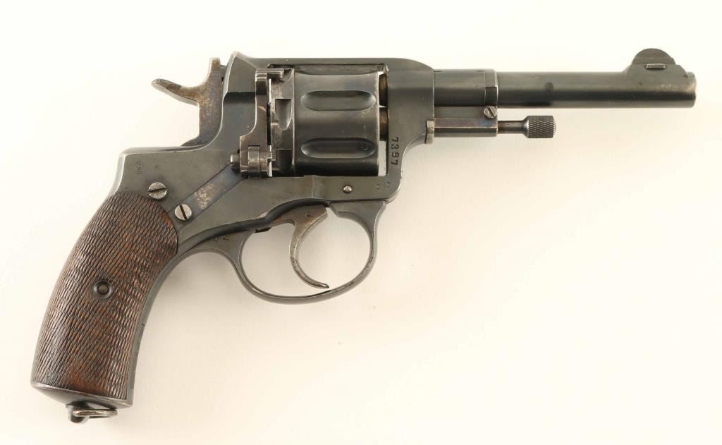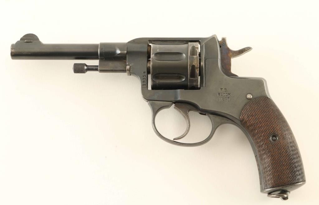 Excellent Polish Nagant revolver chambered in 7.62x38mmR, manufactured circa 1935. Approximately 20,000 of these Nagant revolvers were produced in Poland(utilizing Russian tooling) for their police and security forces. Features 7 shot cylinder that loads though a gate, fixed sights, approx. 4.5 inch barrel, and lanyard ring on butt. Operates single and double action. Action works fine and lock-up is tight. Bore is shiny with strong rifling and some moderate pitting. Metal finish is an even dark blue with some thinning evident at muzzle and along edges. Hammer and trigger retain much case coloring. Very good condition wood grips with wear from normal use. Numbers match where observed. No import marks observed. Condition is NRA Fine ***C&R Firearm***