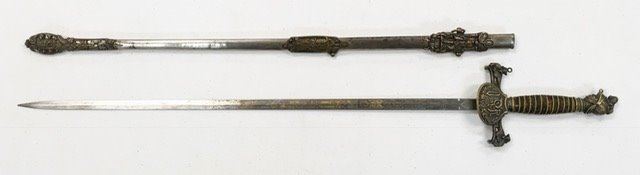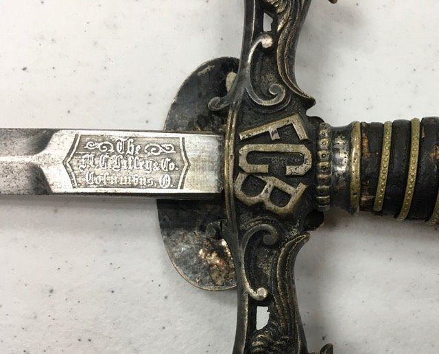 Figural Mounts On Scabbard And Etched Blade. By Mc Lilley & Co Columbus Oh