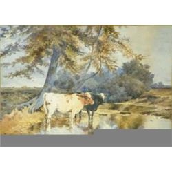 F. Crittenden watercolour, Cattle watering, signed and dated '03, 7 x 10 ins. £150-200