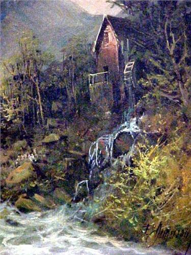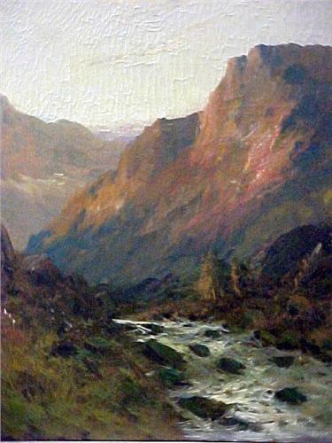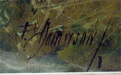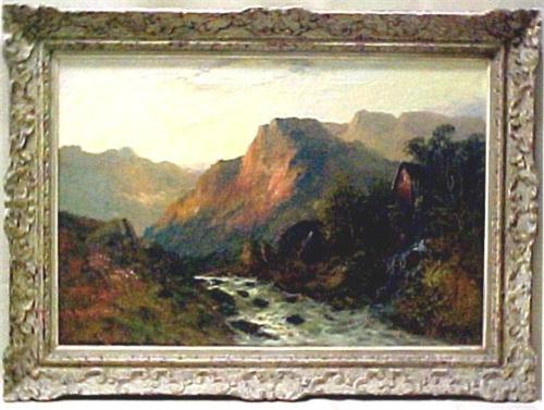 F.(Frank) Jamieson oil on canvas landscape; listed British artist; signed lower right; framed; image measures 20" x 30" (overall crazing in sky)