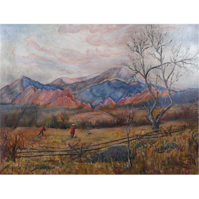 F.J. Gebbe, Oil on Board "Hunter's in the Garden on the Gods" Signed lower right 1948 22" x 28"