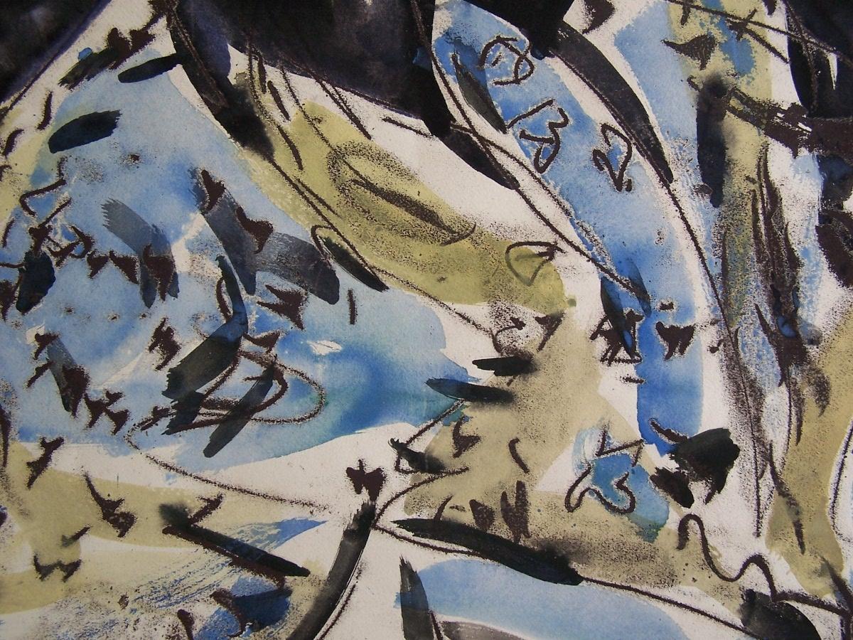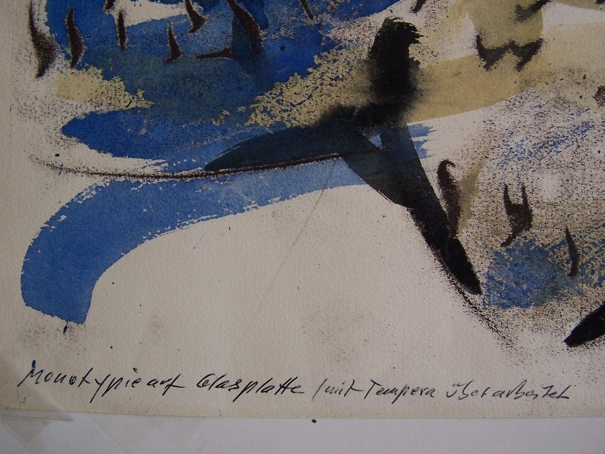 Technique: Original Hand Signed Tempera and Monotype on Glass-plate, worked over with Tempera on paper