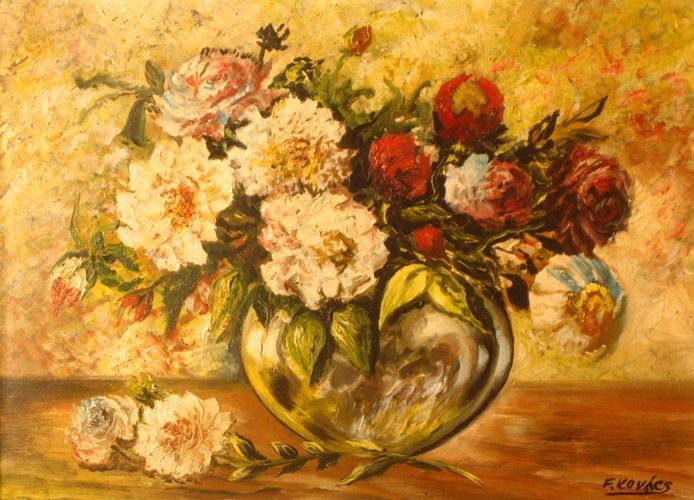 F. Kovacs, , , Vase of Flowers, Oil on cardboard, 34x47cm, Signed., , , , ,