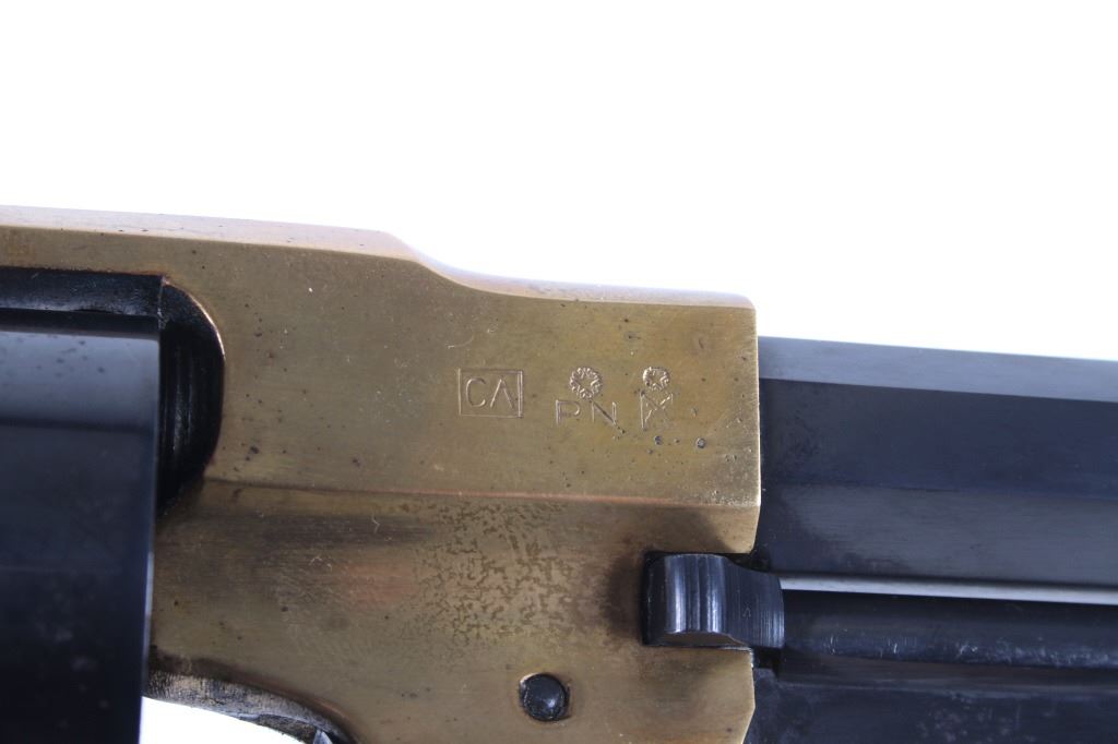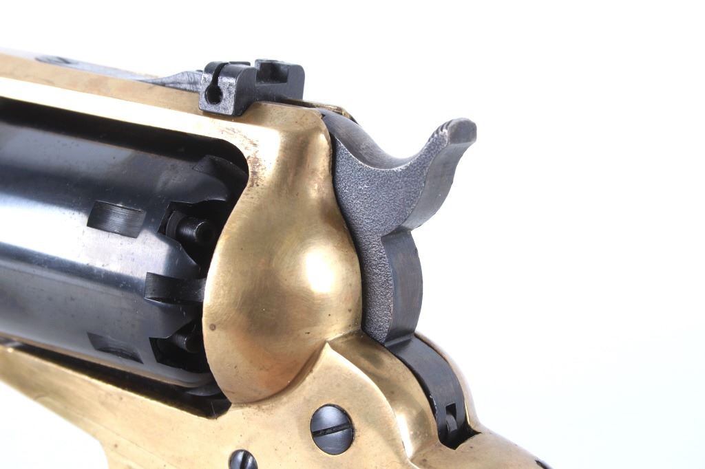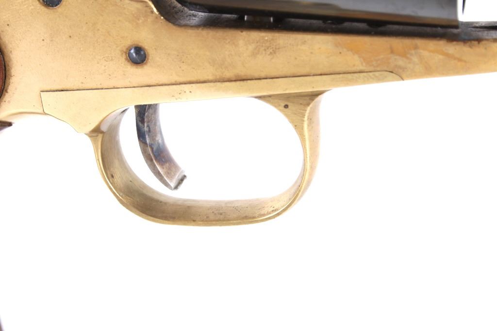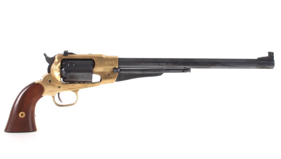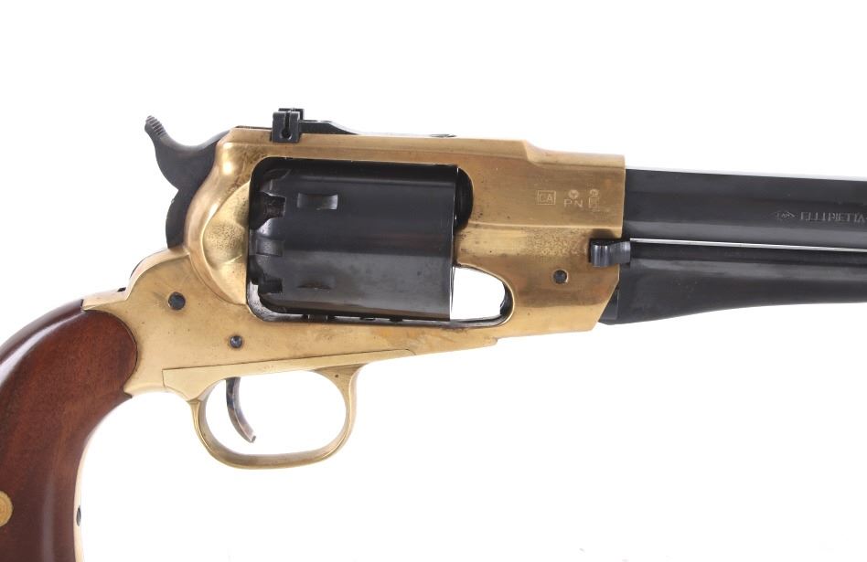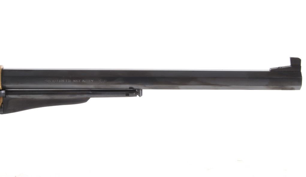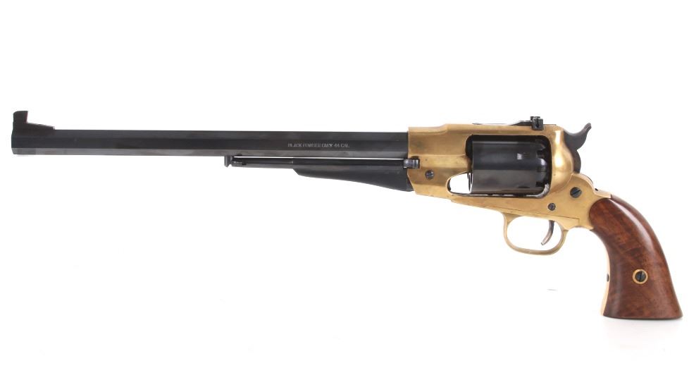 Featured in this lot we have a F.Lli Pietta Model 1885 single action percussion revolver chambered in .44 caliber. The revolver displays a long 12' octagonal barrel, brass frame, brass trigger guard, six shot cylinder, walnut grip, and casehardened hammer and trigger. The side of the revolver is marked "Black Powder Only 44 Cal" on the right side and "Fap F.Lli Pietta - Made in Italy" with import and manufacture stamps. The frame shows a wonderful gold color. The hammer shows beautiful case color hardening. The revolver shows a tight action and smooth mechanics. Serial Number: R360608. This firearm qualifies as an Antique, and does not require FFL Transfer or NICS Background Check.