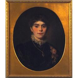 oil on canvas (laid on board), signed and dated 1884, portrait of a woman, oval, 56 x 46 cm; retouches