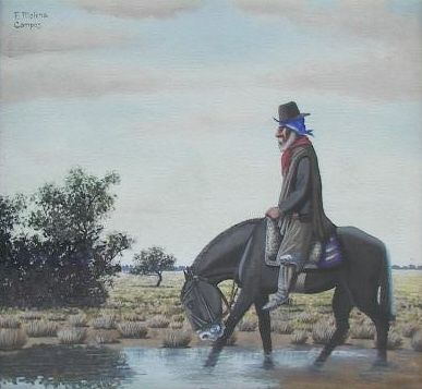 , (7584_4_6) Florencia Molina Campos (1891-1959), Gouache, " Un Descanso", 14" X 14", Signed Top Left