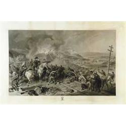 Lot 1335 F. O. C. DARLEY (American, 1822-1888) “ON THE MARCH TO THE SEA”. Large black and white engraving after a painting by Darley. Engraved by A. H. Ritchie. Wonderful historical print shows Sherman atop horse looking over battle scene. Unframed with large margin. SIZE: 36” x 51”. CONDITION: Good. Some light foxing. 9-95262 (300-500)