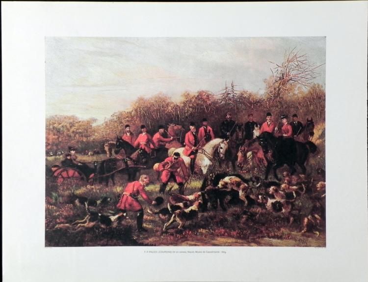 Artist: F. P. PalizziTitle: CoursingOriginal in Museo de Capodimonte, ItalyMedium: Lithograph print on paperImage size: 11 3/4" x 15 1/2"Sheet size: 15 1/2" 20 1/4"Condition: Excellent