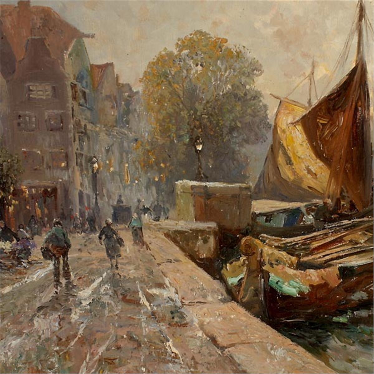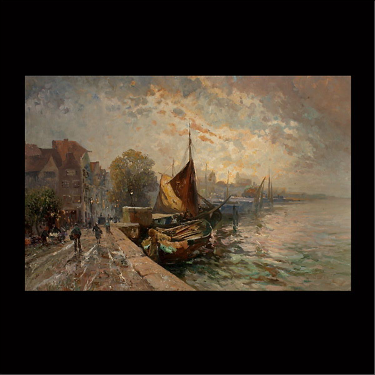 F.R. LEBLANC (19th Century) A Day in the Harbor Oil on canvas 28.50 x 41.75 inches/ 72.4 x 106 centimeters Signed lower right "F. R. Leblanc" Frame: 33.50 x 47 inches/ 85.1 x 119.4 centimeters In good condition: slight wave in the canvas. Framed