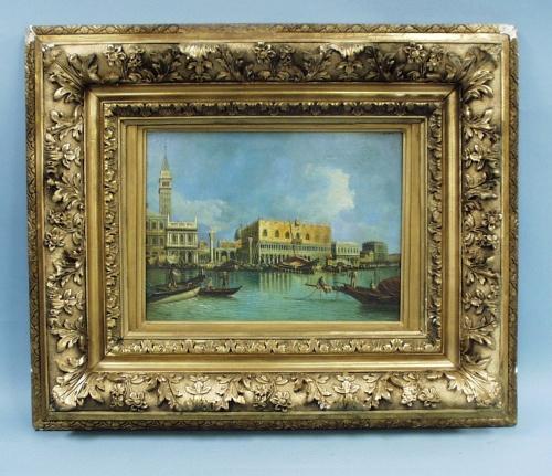 F. RICCARDI - 19th century Italian school. "St. Mark's Square". Oil on wood panel. Signed lower left. 11 1/2" x 15 1/2". In gilt wood frame.