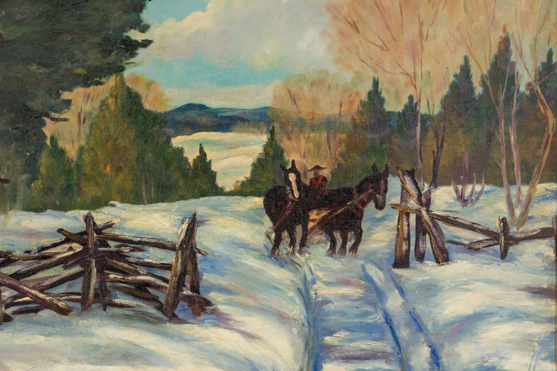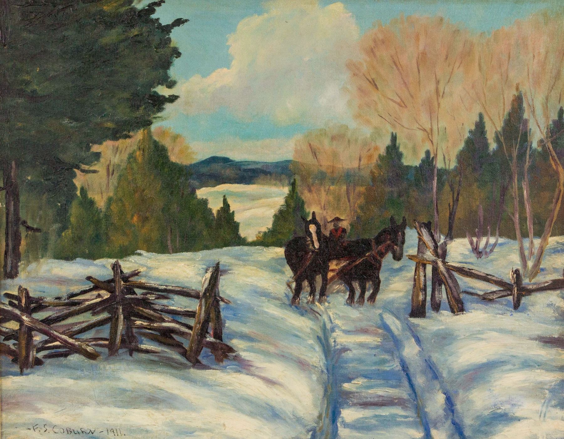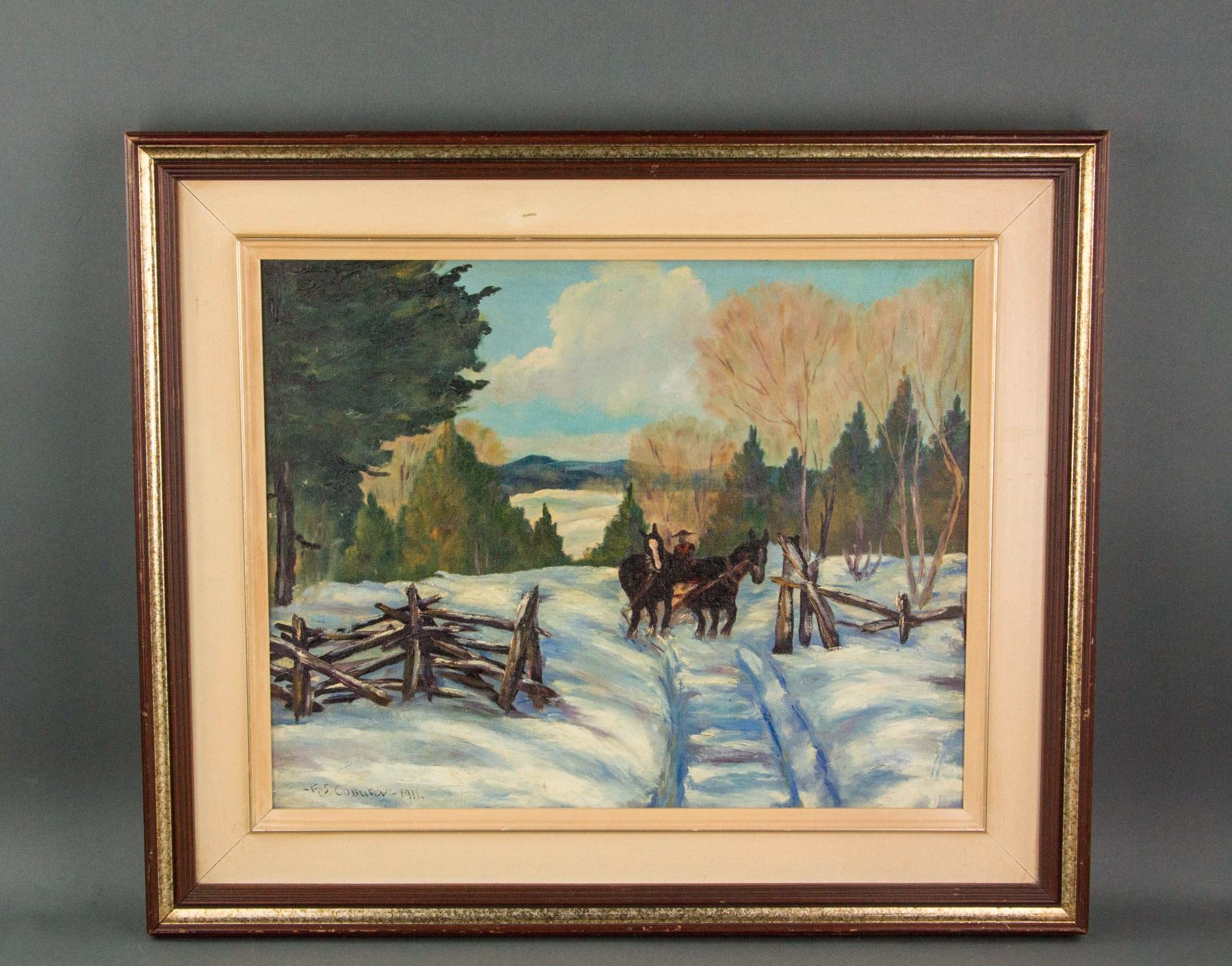 Horse and sleight winter; oil on board; framed; signed front and back, Frederick Simpson Coburn (1871-1960), Canadian artist; RCA; dated 1911; 15 inch x 19 inch