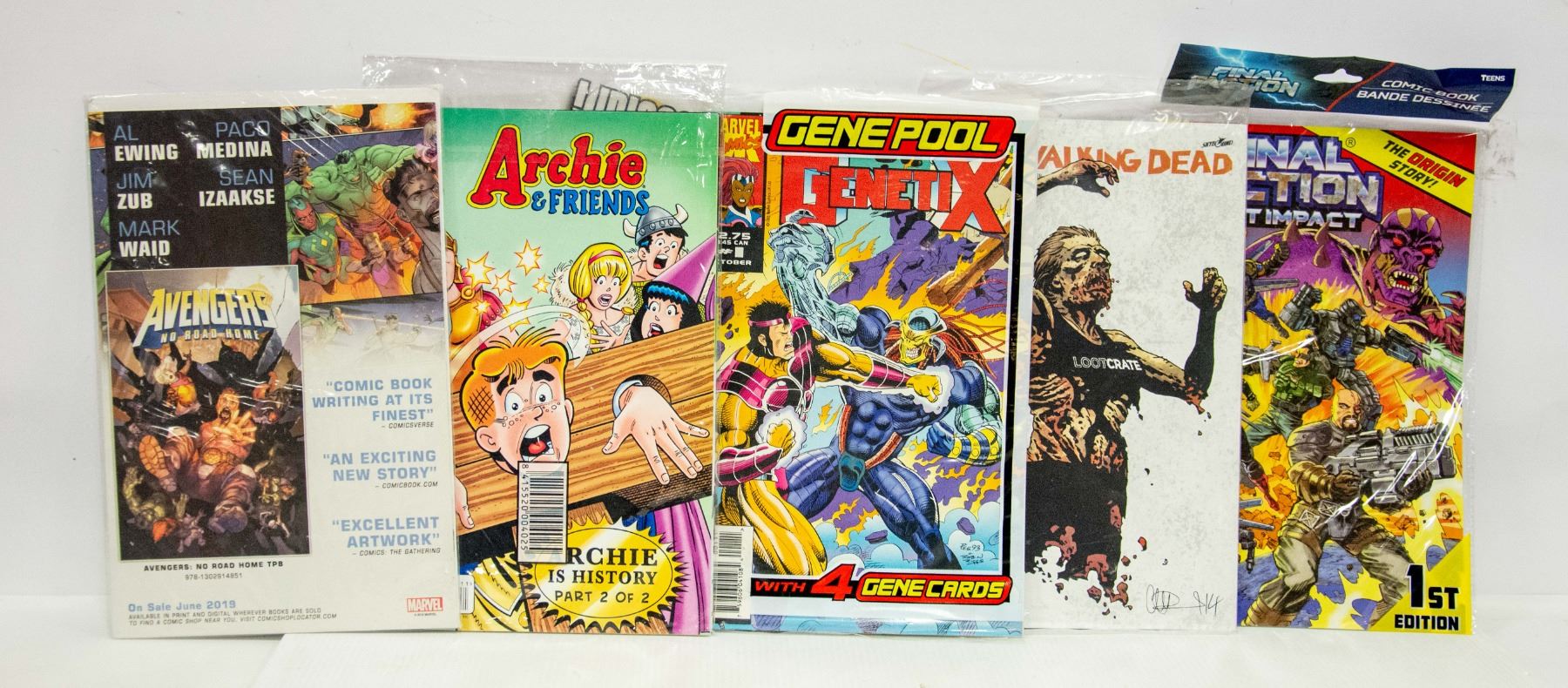 PROMO TRUE BELIEVERS AVENGERS FOREVER #1 2018, FINAL FRACTION FIRST IMPACT 1ST EDITION, NO #1 FEB 2022 W/THE WALKING DEAD 132: HAPPINESS, MARVEL GENE POOL: GENETIX W/4 GENE CARDS & ARCHIE & FRIENDS SET OF 3 #131-133