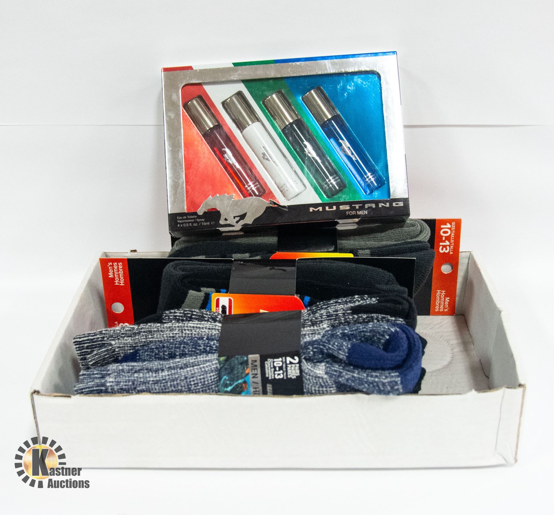 EAU DE TOILETTE SPRAY 4 X 0.5 FL OZ BOTTLES W/NEW MENS 6 PAIR SOCKS SIZE 10-13     **ALL ITEMS MUST BE REMOVED BY 5PM SATURDAY, NOVEMBER 23RD 2024. ALL REMAINING ITEMS WILL BE SUBJECT TO A $6.00 PER DAY STORAGE CHARGE. ANY ITEMS REMAINING AFTER MONDAY, DECEMBER 9TH 2024 WILL BE CONSIDERED FORFEITED. NO REFUNDS WILL BE ISSUED FOR FORFEITED ITEMS. TO SCHEDULE A PICK UP APPOINTMENT CLICK HERE