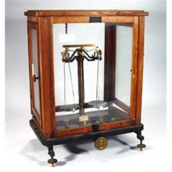 F. Sartorius Gottingen advanced beam balance scale in a glazed mahogany case, 50cm high
