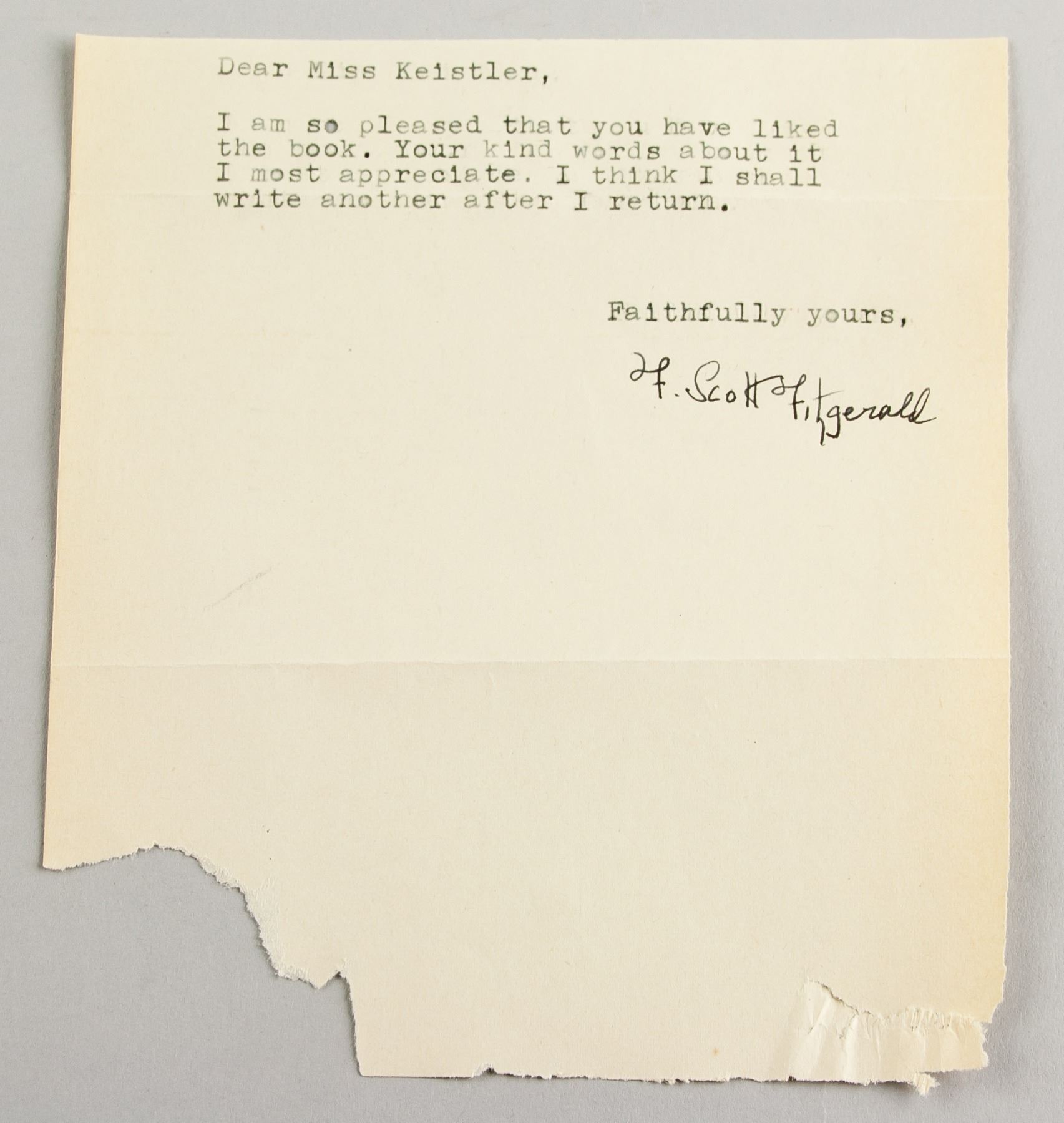 Autograph and letter by Francis Scott Key Fitzgerald (1896-1940); known professionally as F. Scott Fitzgerald, American novelist and short story writer; writer of The Great Gatsby; 15 cm x 13.2 cm