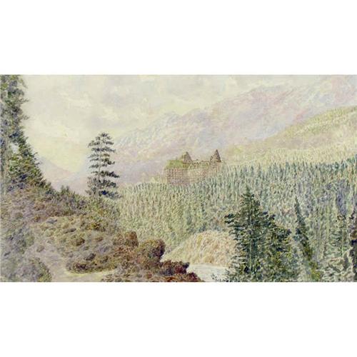 British/Canadian [20th century] SULPHUR MOUNTAIN AND BANFF SPRINGS HOTEL, BANFF, ALTA watercolour on paper 9 x 15.5 in. (22.9 x 39.4 cm) signed & titled