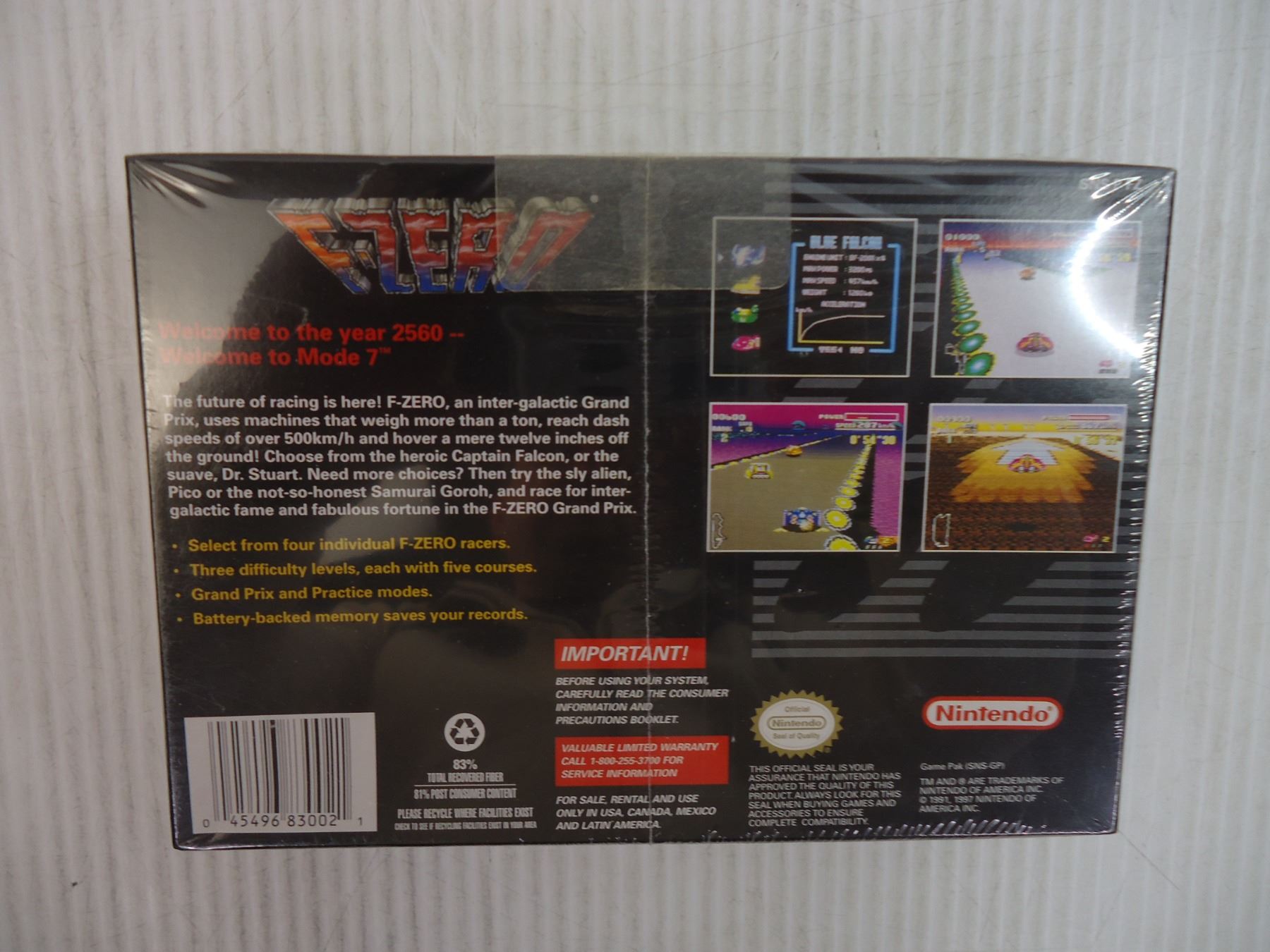 F-Zero -Super Nintendo Game-Brand New (sealed) Players Choice Edition