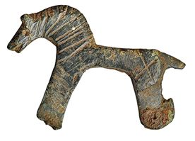 Fíbula en forma de equino. Siglos I-III d.C. Bronce. Longitud 4,1 cm.
