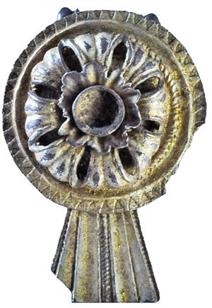 Fíbula galo-romana. Siglos I a.C.-I d.C. Plata dorada. Altura 2,5 cm. Incluye peana.