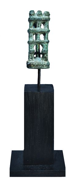 Fíbula romana en forma de templo. Siglos II-III d.C. Bronce. Altura 3,0 cm. Incluye peana.