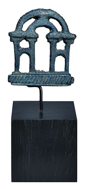 Fíbula romana en forma de templo. Siglos II-III d.C. Bronce. Altura 3,5 cm. Incluye peana.