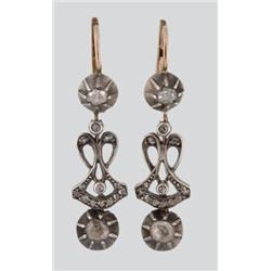 Bécs, 19. sz. utolsó harmada, 14 k arany és ezüst, "SR mesterjegy", csüngos virágforma, abgedekt foglalásban 30 db gyémánttal, cca 0,60 ct, patent zárral, 5,3 g