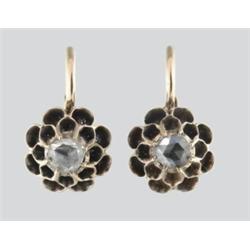 19. sz. közepe, 14 k arany, karmos foglalásban 2 db gyémánttal, cca 0,25 ct, GyCrSi, eredeti dobozában, 3,5 g